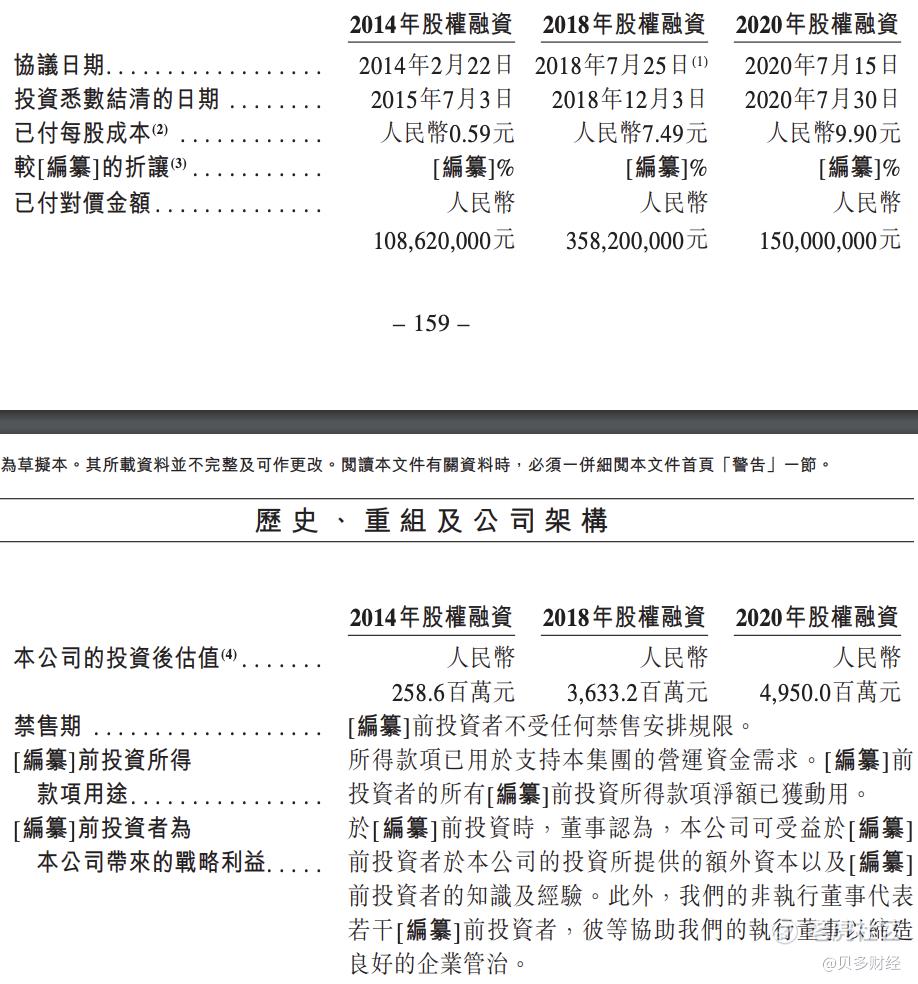 成立至今,陆道培医疗曾完成多轮融资,分别是2014年、2018年和2020年的股权融资,分别融资约1.09亿元、3.58亿元和1.50亿元,对应的成本分别为0.59元/股、7.49元/股和9.90元/股,投后估值分别为2.59亿元、36.22亿元和49.50亿元。