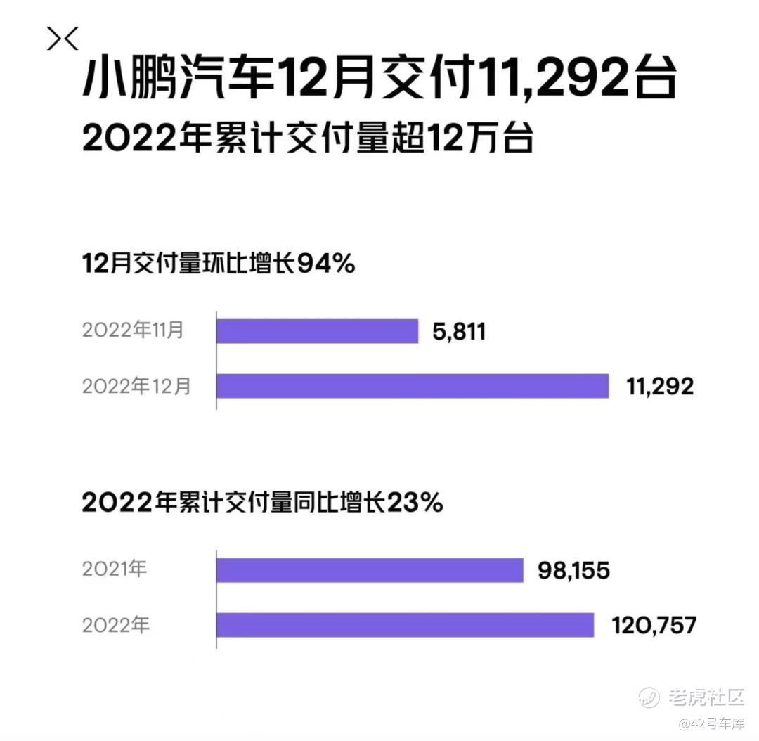 小鹏 12 月交付 11,292 台,重新超过月交一万台的数据,环比增 94%。