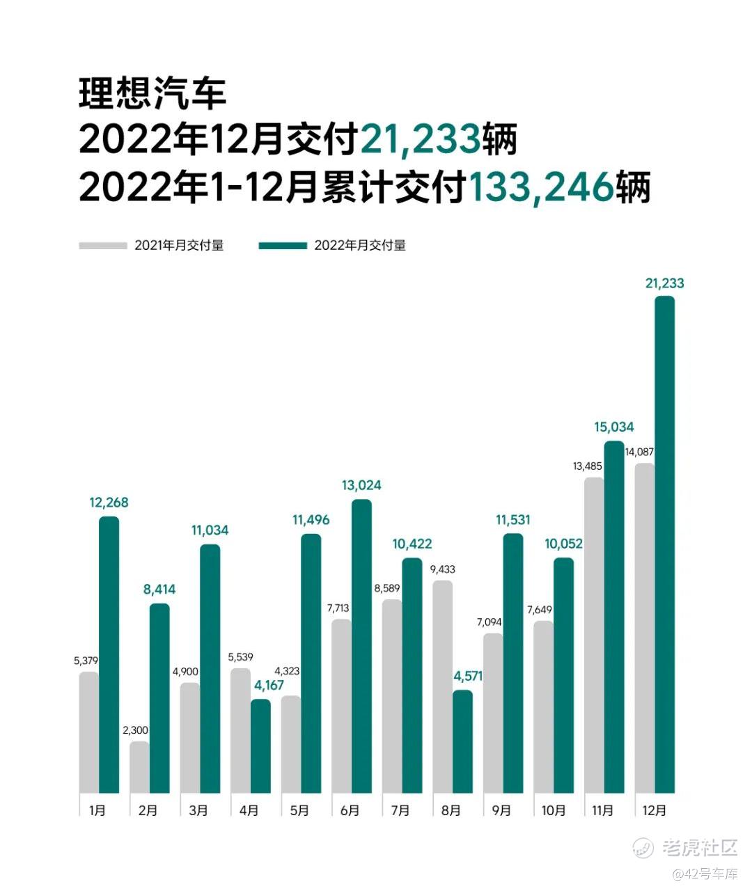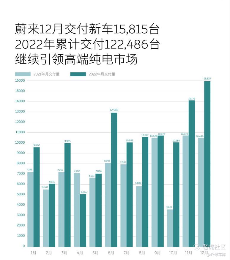 同比去年 12 月增长 50.7%。第四季度累计交付 46,319 辆,同比 2021 年第四季度增长 31.5%。