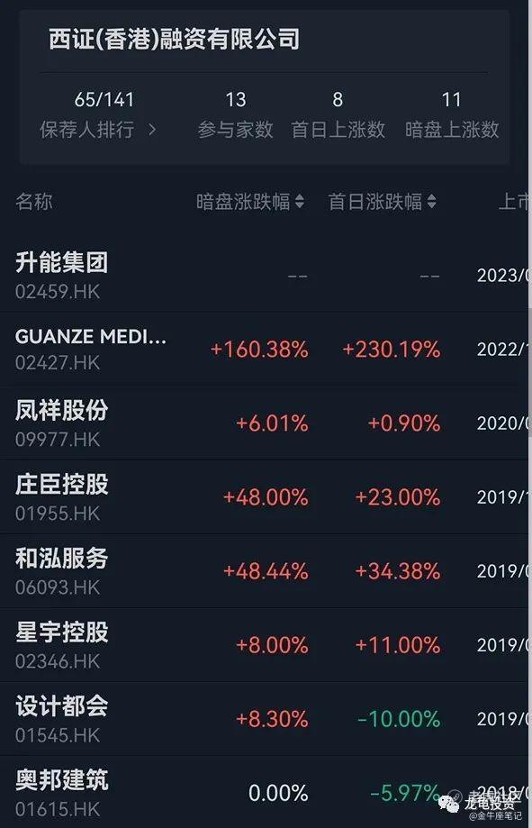 升能集团由西证国际独家保荐,稳价人由越秀证券担任,西证保荐的项目表现都比较突出,稳价人数据有限,目前还没有破发记录。
