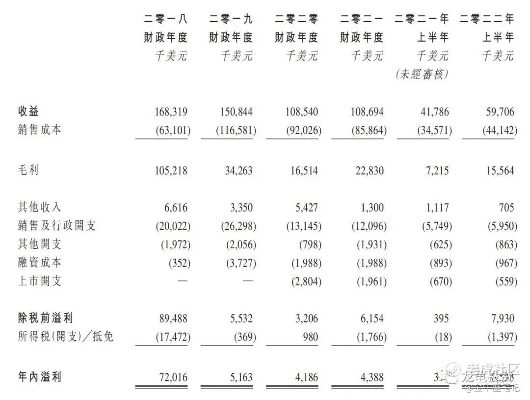 年内溢利:2018年净利7201.6万美元,2019年净利516.3万美元,2020年净利418.6万美元,2021年净利438.8万美元,2022年截至上半年最近12月净利1054.4万美元。