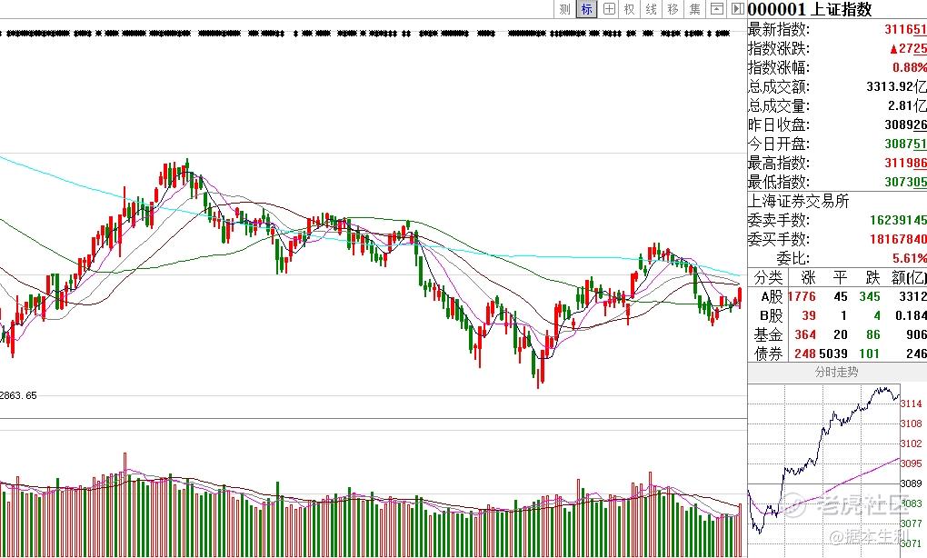 截止到收盘,我们看到沪指上涨0,88%,重新站上了3100点的整数关口,创业板上涨0.41%,都是一根放量的带有向上突破性质的中阳线。我相信新年指数应该会慢慢的逐步的脱离3000点一带,开始进入到往3100、3200震荡攀升的节奏里边。