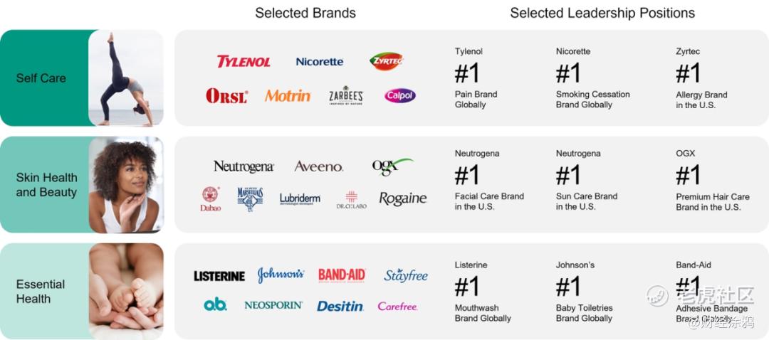 第一块业务为个人护理板块,营收占比38%,包括非处方药和保健产品,如缓解头痛、减轻感冒症状的泰诺,止痛药品莫特林等,共计16个品牌。