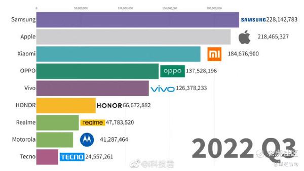 2022年Q3小米是全世界智能手机的第三大厂家,占了12%左右的市场份额。
