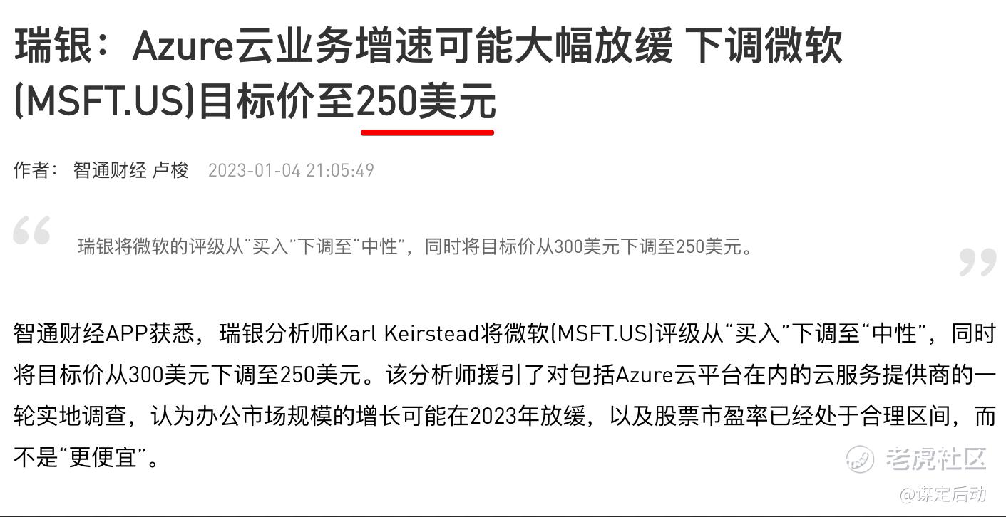 对于微软来说,这只是外部变化的影响而非微软自身的问题,因此我看涨微软的看法不变。目前微软已经Price In了云业务的显著下降,现在的期望值很低,要是财报出来稍微好于预期的话,这会成为上涨的一个推动力量。
