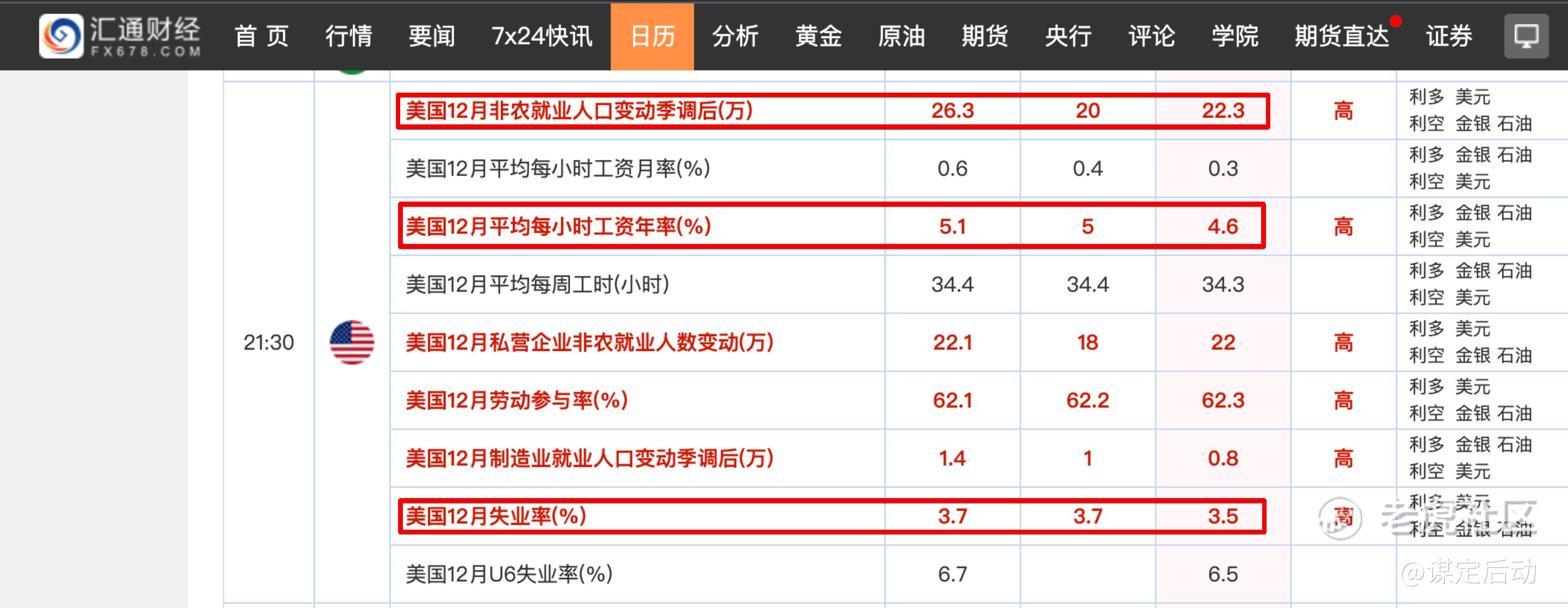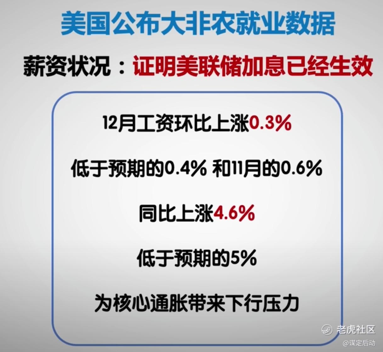 大非农就业数据另一个重要看点是薪资的上涨低于预期,12月工资环比上涨0.3%,低于预期,同比上涨4.6%,低于预期的5%,为核心通胀带来下行压力,这也说明了加息已经在生效。