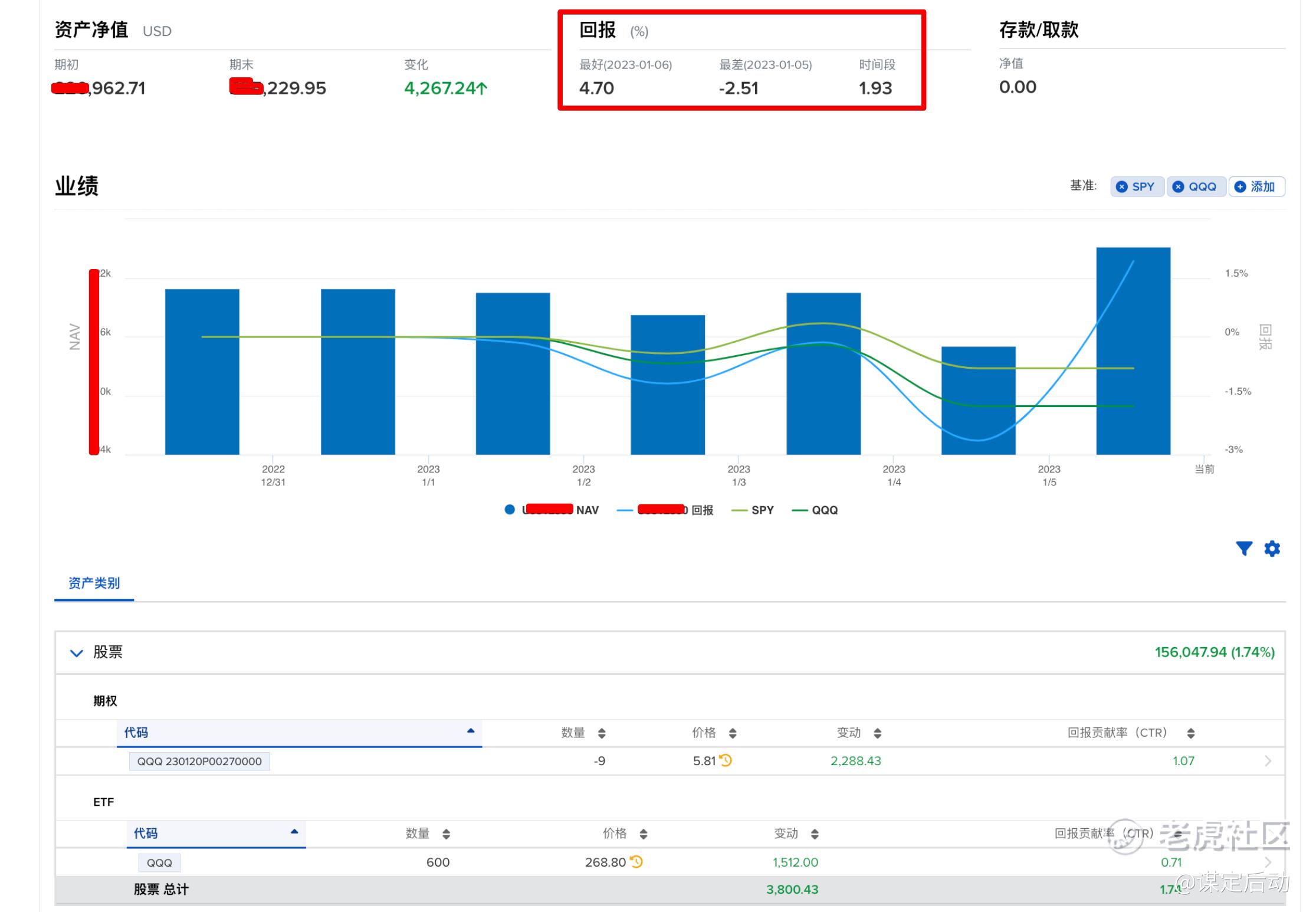 这是我在另一个券商开的账户,我会继续每周分享我的这个账户和大盘指数SPY和QQQ的比较。
