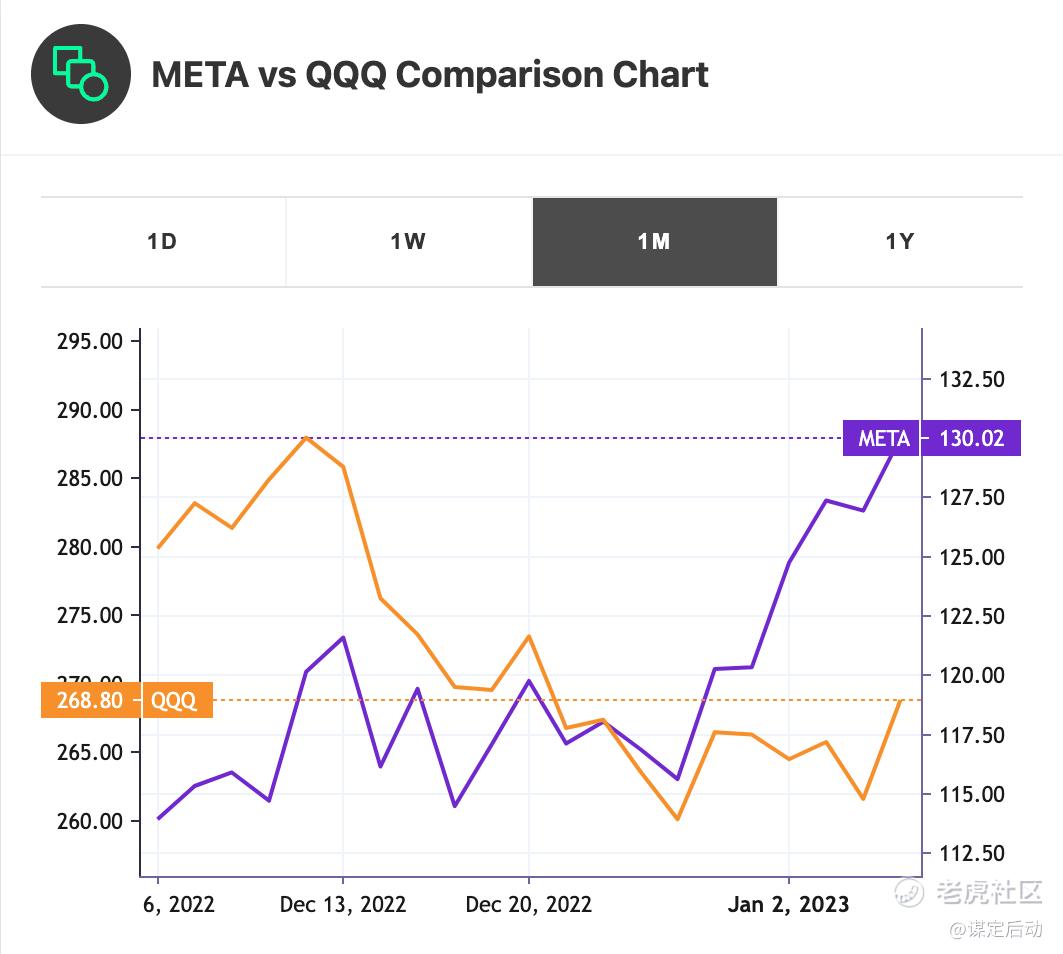 近一个月来META走出了和QQQ不同的趋势,从交易量和短线形态上看似乎是确认了底部。