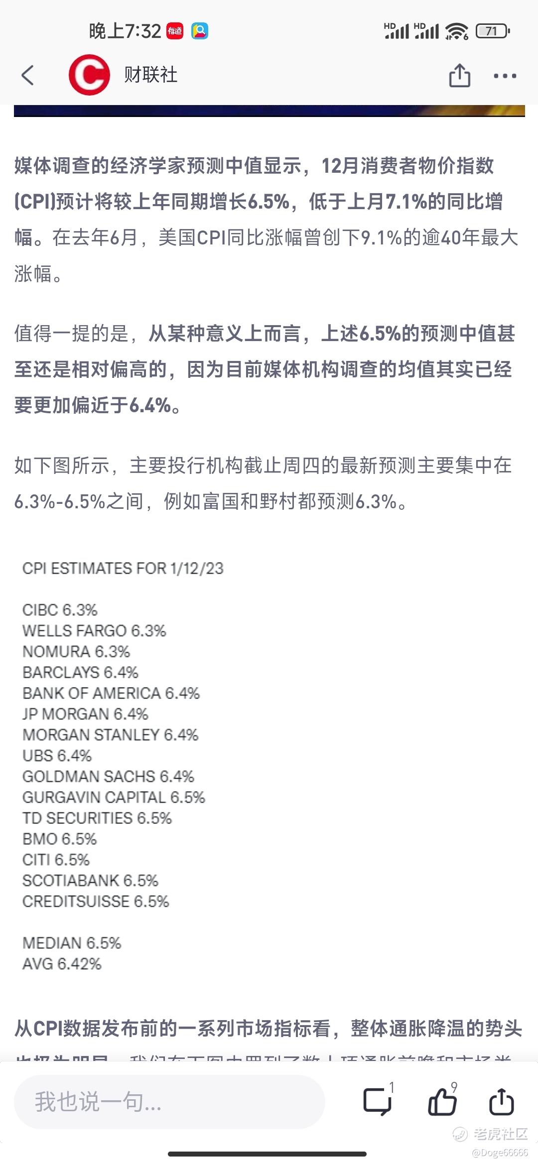 各位虎友们 请问每月美国的CPI指数公布之前 那些投行机构的CPI预测在哪里看的呢? 我现在只知道克利夫兰联储有个预测 其余的投行机构的CPI预测我不知道在哪里看 比如像这张图片里面的数据 [疑问]