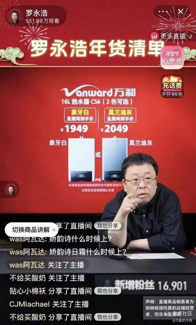 同样成绩差强人意的还有罗永浩淘宝直播间。纵使已经有了千万粉丝,在罗永浩不露面时,直播间场观仅300万左右;而12月11日罗永浩出现的这场直播,场观为538万。
