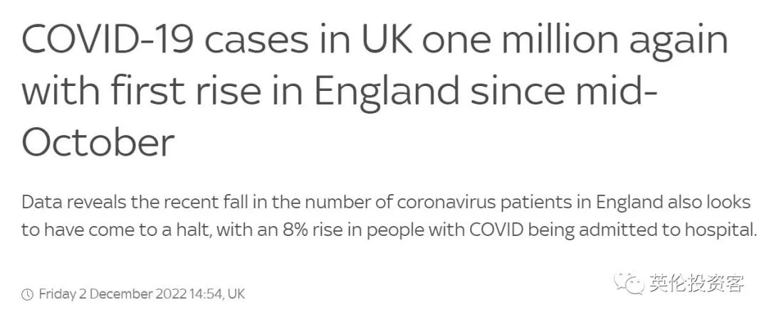 12月2日,英国国家统计局(ONS)发布数据显示,在截至11月21日的一周内,英国新冠感染病例总数上升了6%超过100万例,高于上周的972,400例。