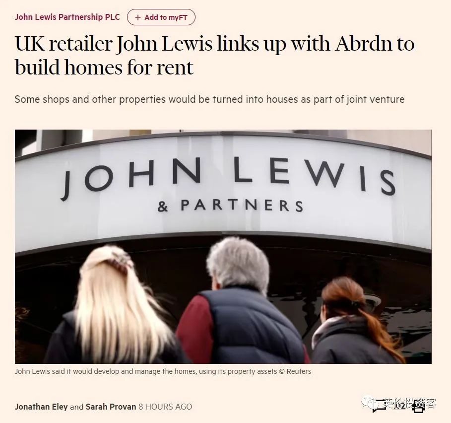 John Lewis与投资管理公司合作开发长租公寓