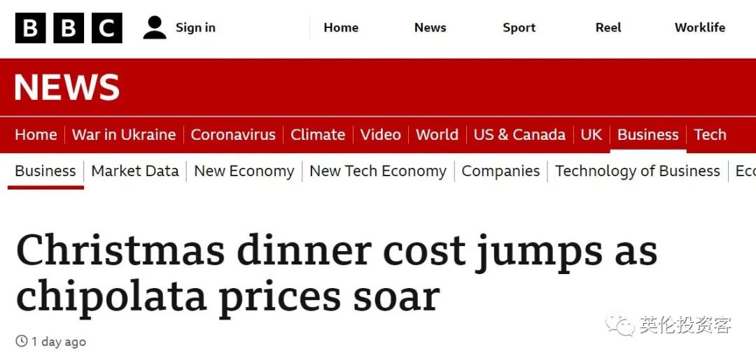 英国圣诞大餐成本今年将上涨22%