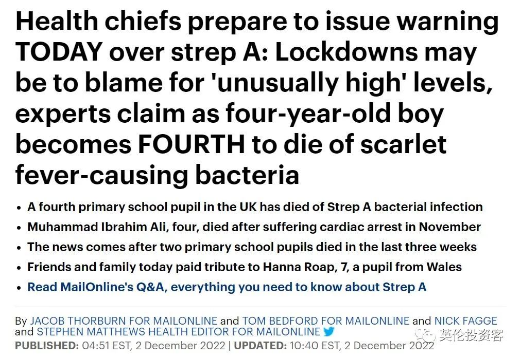 英国多名儿童死于A型链球菌!英新冠感染人数反弹至百万...