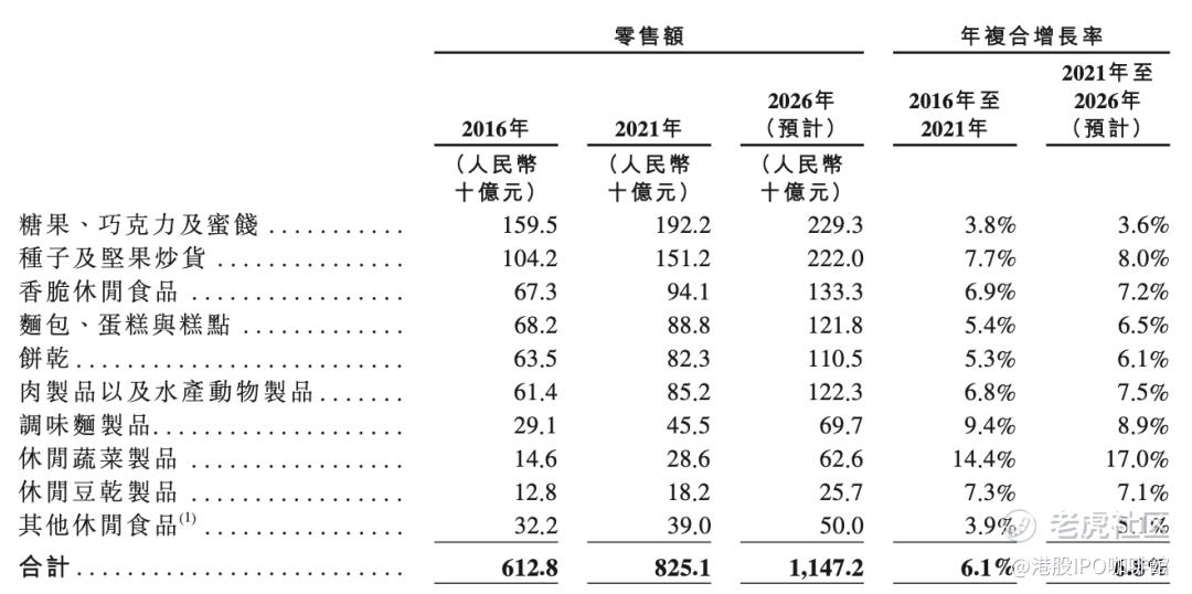 账号菌相信中国消费者对于食品品牌的认知度和信赖度正在持续上升,因此在一个如此分散的市场,账号菌丝毫不怀疑卫龙可以受益于市场集中度的提升。不过中国调味面制品行业并非一个朝阳产业,调味面制品往往伴随着高油高盐,主要消费人群主要为年轻人以及部分追求“怀旧感”的中年一代,过去数年内调味面制品行业乃至整个休闲食品的行业增速实际上也仅略高于中国GDP增速: