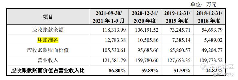 《招股书》显示,2018-2021年1-9月份,雨中情应收账款接连增加,由2018年的4.92亿元飙升到2021年1-9月份的10.55亿元。应收账款增加,坏账准备也在增加,由2018年的5489.02万元增加到2021年1-9月份的1.28亿元。