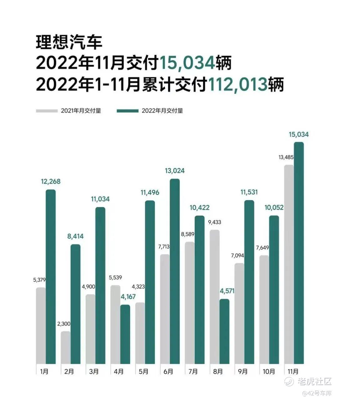 11 月,理想$理想汽车(LI)$ 的月交付量同比增长 11.5%。截止到 2022 年 11 月 30 日,理想汽车累计交付量为 236,101 辆。