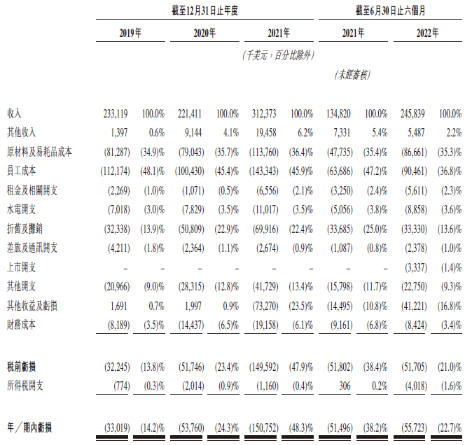招股书显示,在过去的2019财年、2020财年、2021财年三个财政年度和2022年上半年,特海国际的收入分别为2.33亿、2.21亿、3.12亿和2.46亿美元,相应的净亏损分别为0.33亿、0.54亿、1.51亿和0.56亿美元。