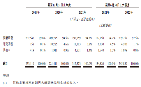 特海国际的收入主要来自海底捞餐厅的运营,此外亦自外卖以及销售火锅调味品及食材获得收入。