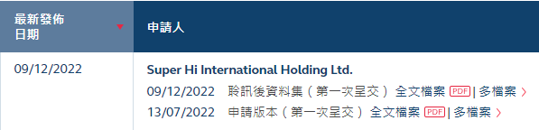 2022年12月9日,总部位于新加坡、分拆自海底捞(06862.HK)的特海国际控股有限公司 SUPER HI INTERNATIONAL HOLDING LTD. (简称"特海国际”)在港交所披露其通过聆讯后的招股书,或很快在香港主板以介绍方式挂牌上市。其早前于7月13日在港交所递交招股书。