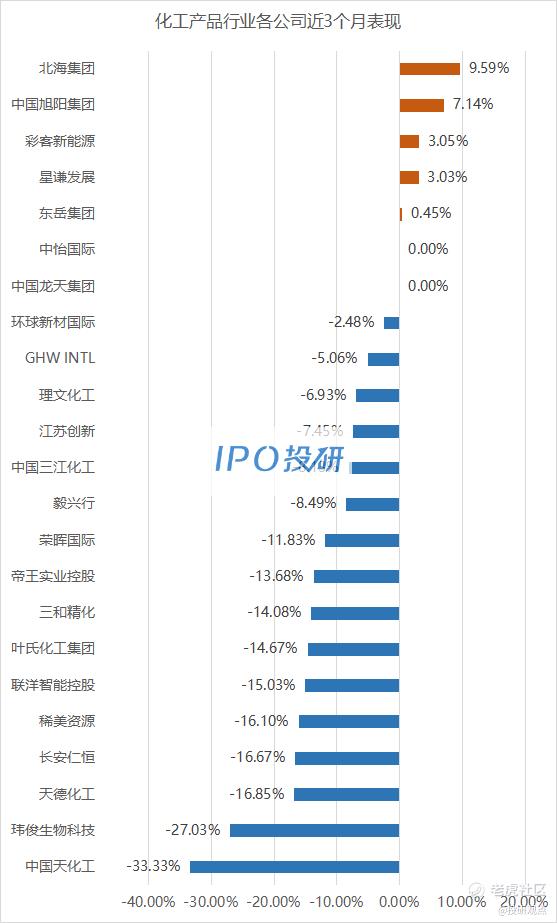 近3个月涨幅最大的是北海集团(00701.HK),涨幅为9.59%;跌幅最大的是中国天化工(00362.HK),跌幅为-33.33%。