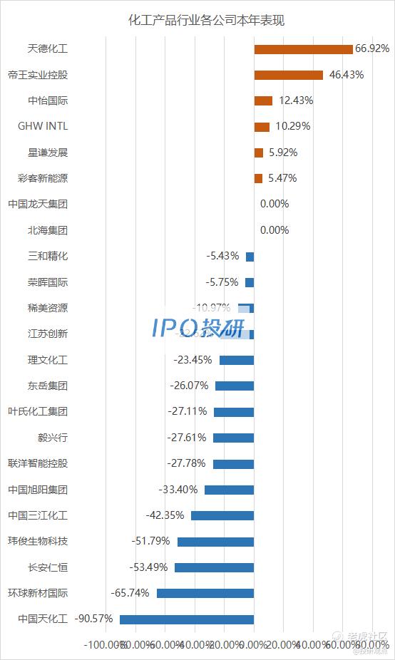 截止至12月12日,共有23家化工产品公司在香港挂牌上市。