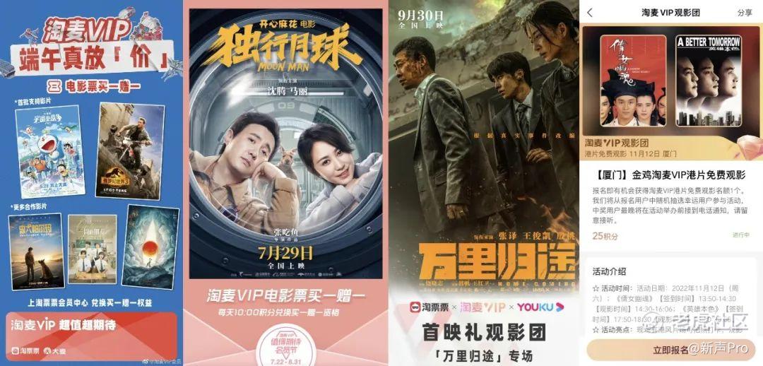 以电影为例,今年淘麦VIP便先后推出《致我的陌生恋人》、《哆啦A梦:大雄的宇宙小战争》、《侏罗纪世界3》、《一周的朋友》、《神探大战》、《外太空的莫扎特》、《独行月球》、《新神榜:杨戬》等数十部头部热门影片的会员权益,覆盖买一赠一、早鸟优惠、19.9元观影资格券、特色观影团、主创见面、定制电影票等多种福利形式。而基于春节档、暑期档、淘票票六周年、淘麦VIP值得期待会员节、金鸡影展等重要档期、品牌节日和电影节展推出的特色权益亦是别出心裁。