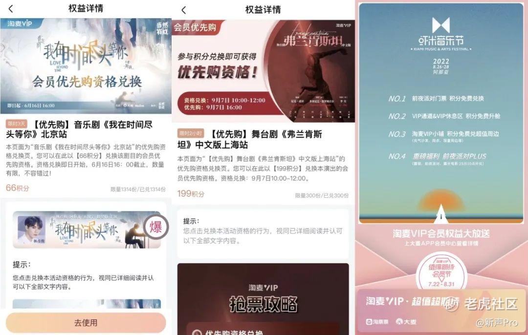 可以说,因演出具有高客单价、稀缺性等特征,平台针对演出项目推出的权益无疑进一步提升了淘麦VIP会员的价值感和体验感。尤其是在一些热门演出中,会员权益让抢票和观演更有保障。