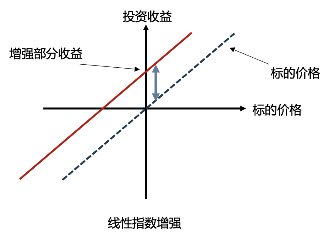严格复制指数涨跌,相当于投资于指数的同时获得固定比例的超额收益;