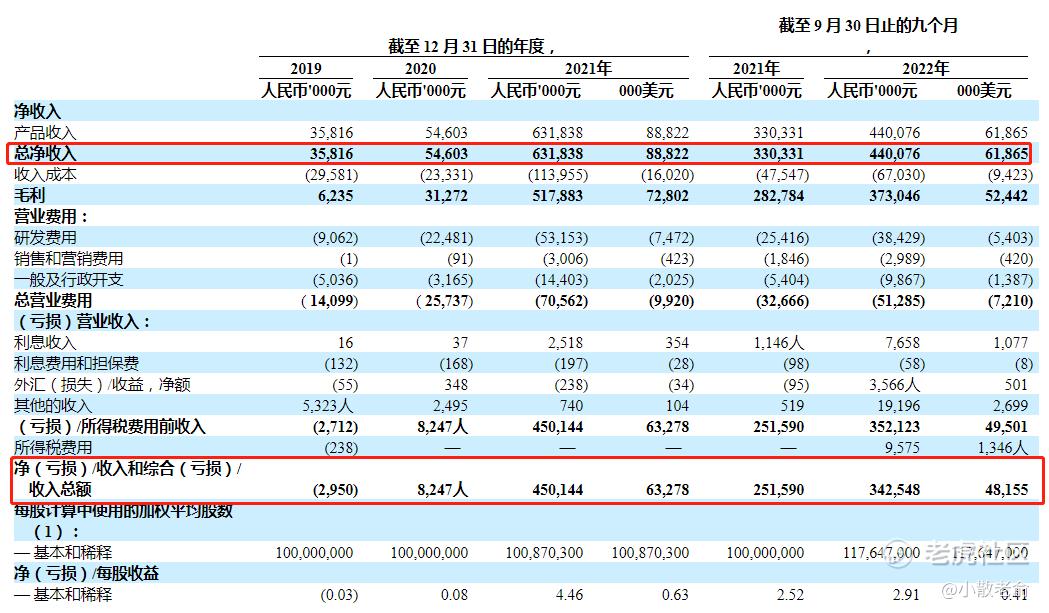 公司从2019~2021年的营业收入分别是3581.6万、5460.3万、6.32亿,2021年营收同比增长1057.15%;2019年~2021年的净利润分别是-295万、824.7万、4.5亿,2021年的净利润同比增长5358.28%。