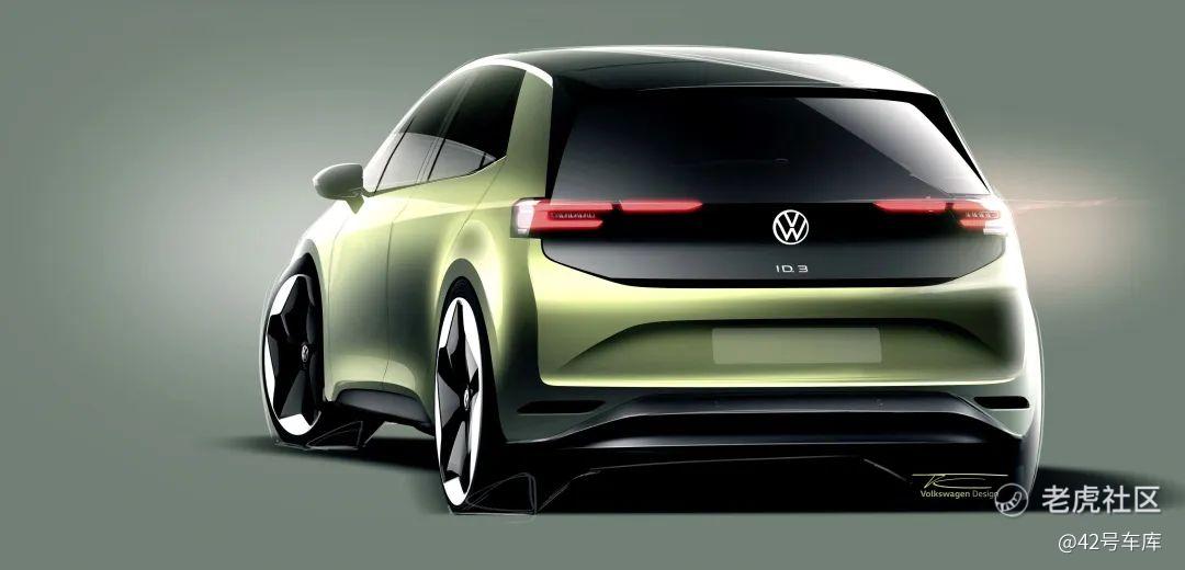 值得注意的是,原先 ID.3 的后尾灯仅点亮左右两侧灯组的部分,后备箱上的红色灯带仅起到装饰条的作用。在渲染图中,整个尾灯都点亮了,弥补了上款车型的遗憾。