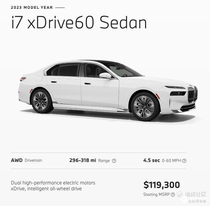 全新宝马 i7 采用第五代 BMW eDrive 电驱系统,最大功率 400 kW,峰值扭矩 745 Nm,零百加速 4.7 秒,相比国内新势力车型,这种动力表现并不算太过突出。