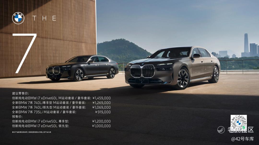 - BMW i7 xDrive60L M 运动套装/豪华套装:¥1,459,000;