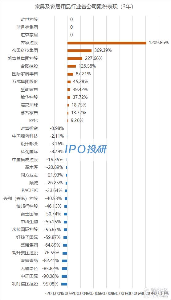 累计表现涨幅最大的是齐家控股(08395.HK),涨幅为981.08%;跌幅最大的是中国汽车新零售(00526.HK),跌幅为-95.08%。