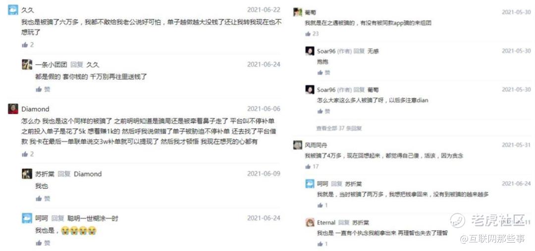 另外,在一篇《我在之遇APP被诈骗的经历》的文章底下,也有很多被骗几万不等的受害者的留言。