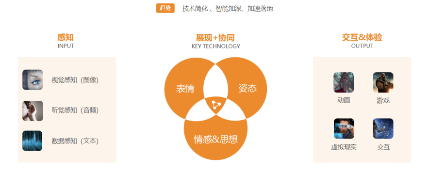基于这个问题,我们用一些AI技术去帮助现在的一些企业做内容生成,帮助动画师更容易的得到虚拟人面部和姿态骨骼动画帧,减少工序节省成本,避免重复劳动,让他们去完成更多创作的事情,制造的事情就由我们技术来替代人工。