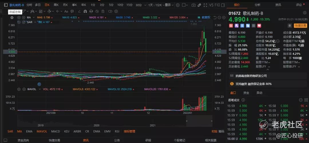歌礼制药周五回调了,最近几周翻了2倍多,涨的太猛了。