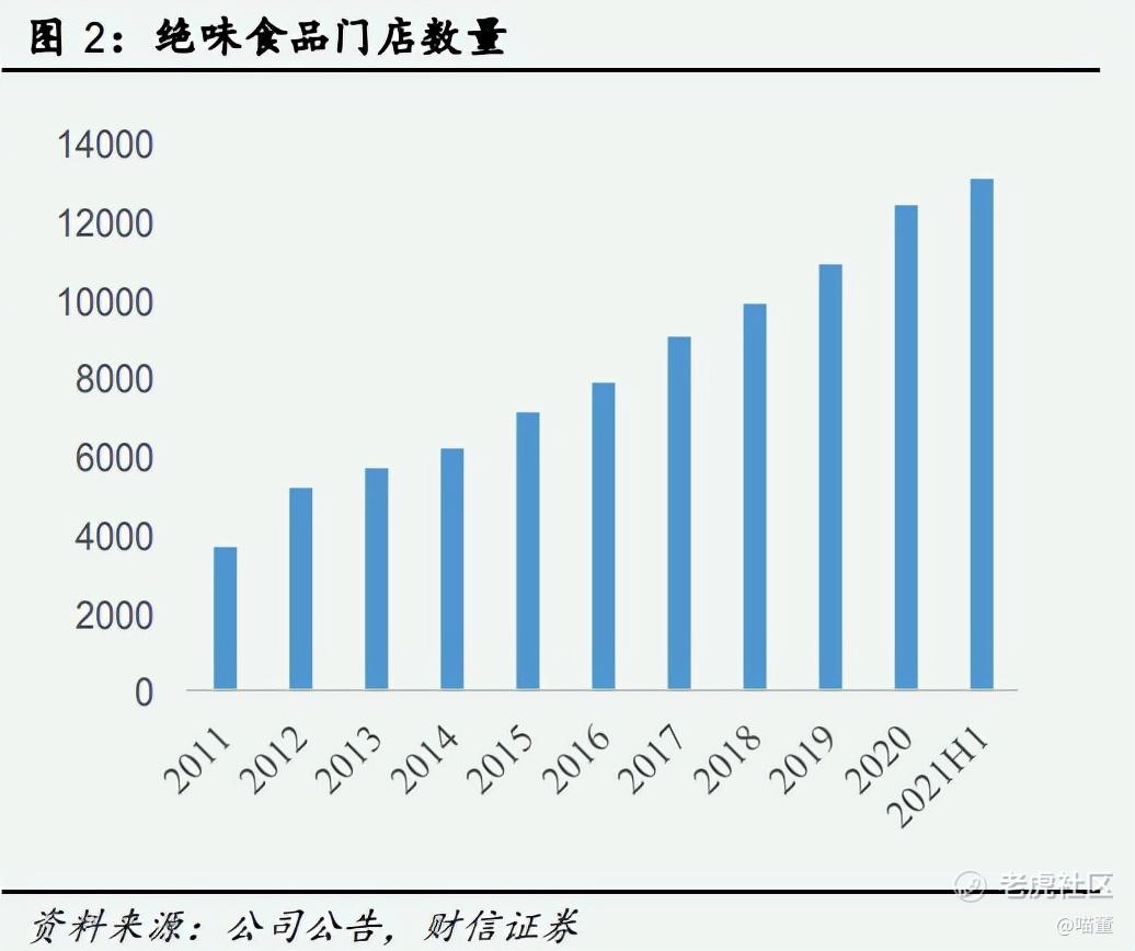 2017年3月,公司在上交所上市。目前公司门店已覆盖全国31个省级行政区、港澳特别行政区及部分海外地区。截至2021H1,公司在中国大陆地区门店总数已达13136 家,是目前国内规模最大、拥有门店数量最多的休闲卤制食品连锁企业。