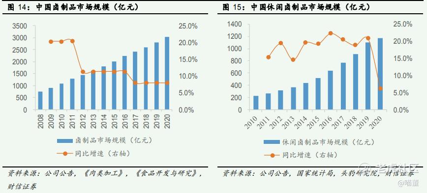 另一方面,休闲卤制产品口味具备成瘾性,叠加行业内优秀企业在产品创新与营销活动等方面的努力,人均消费频次有望逐步提升, 从而推动行业规模进一步扩大。从供给端来看,卤制品生产企业在配方、锁鲜短保工艺、 包装、冷链物流等方面多向升级,推动产品升级迭代。