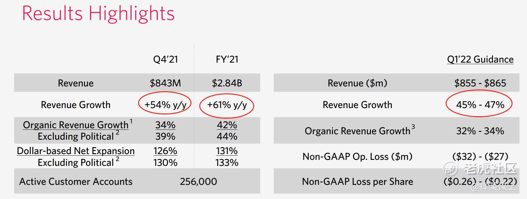 1. 在2020年末,我们表示有信心在四年内实现30%以上的有机收入增长。在超出预期一年之后,现在以超过30亿美元的运行速度产生收入,公司重申对未来三年的信心。我们拥有庞大且不断增长的客户群,代表着世界各地的企业并且跨越几乎所有垂直领域,并且已经证明持续强劲的基于美元的净扩张率。