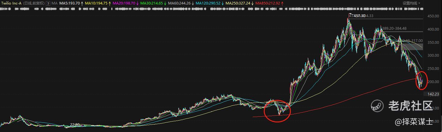 前期在加息与缩表预期的双重冲击之下,公司股价快速暴跌,上市以来第二次跌至850天线,虽然近期小谋士写了蛮多850天线的一些文章,但很多投资者都是怀疑的眼光,但是不得不说,850天线对于长期牛股有致命的地心引力也有极强的支撑效果,这一次,Twilio再次跌至850天线,站稳后,迎来了超预期的季报,盘后股价暴涨。