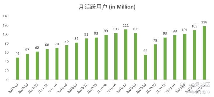 ✅过去5年(2017-2021年)Uber的月活跃用户录得CAGR 21.25%复合增长率。