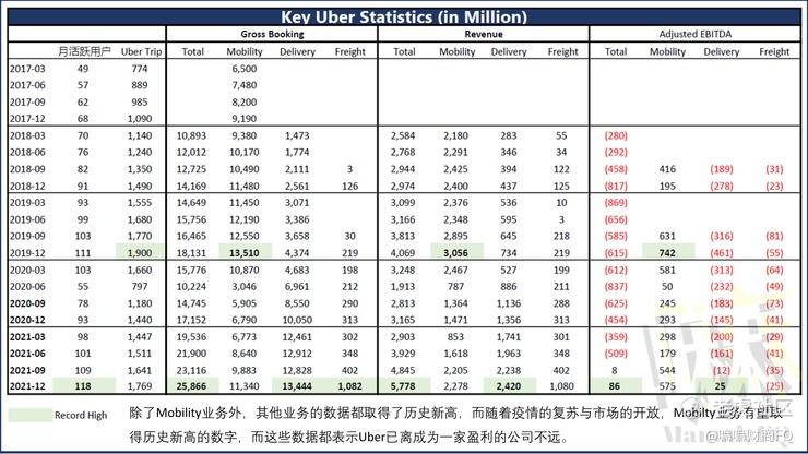 ✅FY21Q3是Uber首次取得Adjuested EBITDA正数,而FY21Q4也延续上个季度的成长步伐。
