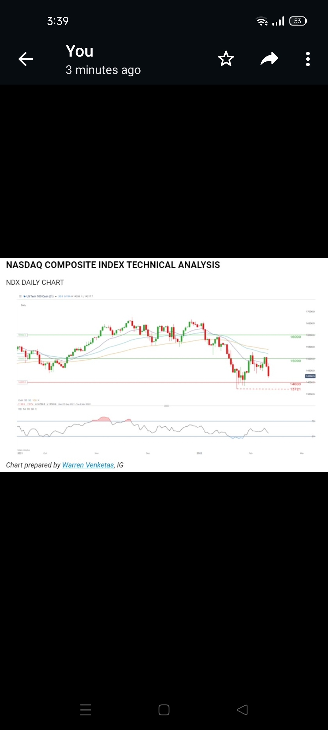 Resistance levels: 15000, 20-day EMA (purple)