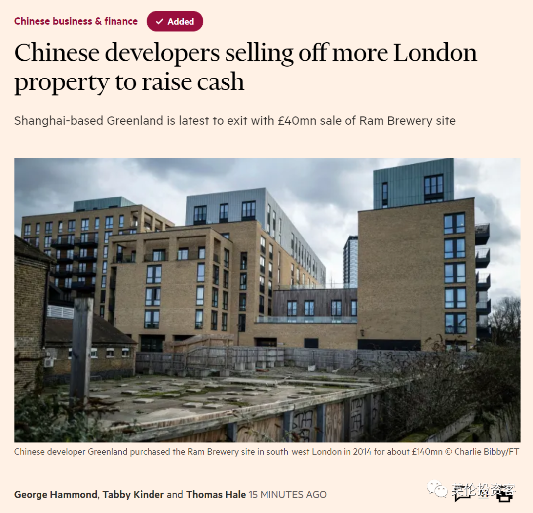 第一个进入英国伦敦市场的中国开发商,刚刚卖掉了旗下首个伦敦项目。