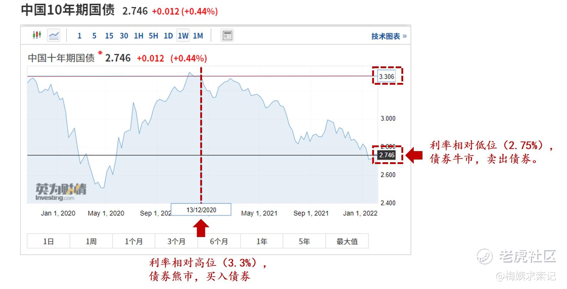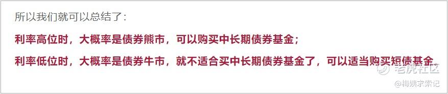 梅姨在《闲钱理财(五)每个人都适用的稳健投资方法——债券基金投资》中说过,利率高位时,大概率是债券熊市,我们可以配置些中长期债券;利率低位时,大概率是债券牛市,我们就可以考虑卖出中长期债券了。