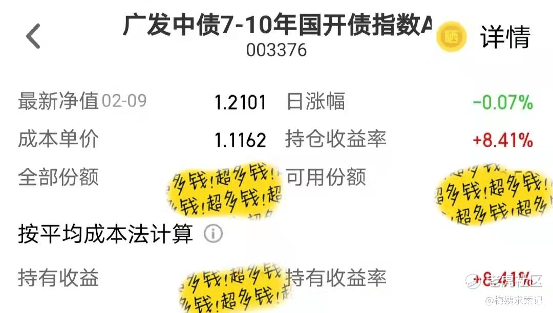 提醒之后,梅姨当天反手就买入了一些长期债券,主要买的是国债指数基金,也就是广发中债7-10年国开债指数A(003376)。