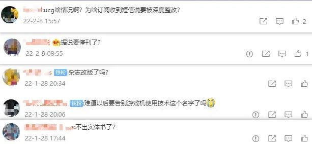 2月8日,UCG官方商城向订阅玩家发送了纸质杂志出版延期的消息,称“根据管理部门要求,《游戏机实用技术》杂志进行相关改变,杂志栏目内容需做深度调整,出版延期,复刊时间未定。”官方也针对此次的出版延期提供了不同的解决方案,包括申请未发杂志的退款、转化为UCG官方APP中的金币等。