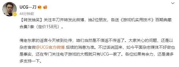 除此之外,UCG前美编“一刀”也对网传事件作出了回应,他表示,平媒现在不好做也是事实,希望大家还是能以不信谣不传谣的态度继续支持UCG。