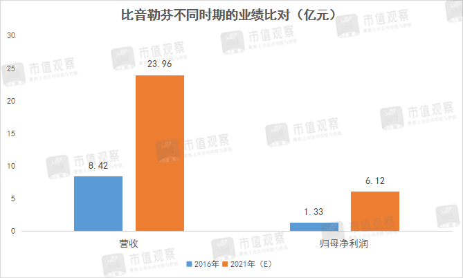 我们从“业绩与市盈率”两方面来复盘比音勒芬翻倍牛股的底层逻辑。为了方便对比,我们选取的时间区间为2016年-2021年(2021年数据为Wind一致预期)。